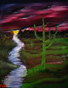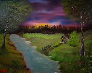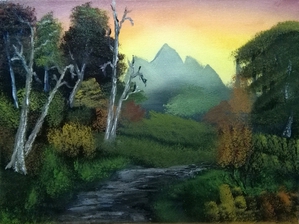 Landschappen gemaakt door het bekijken van hoe schildertechniek nat in nat werkt.